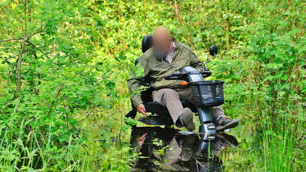 De toegesnelde brandweer heeft de man naar het droge gebracht en daarna naar huis vervoerd. In de scootmobiel zat een nieuwe accu, maar die was niet tegen de hoge plas water bestand.