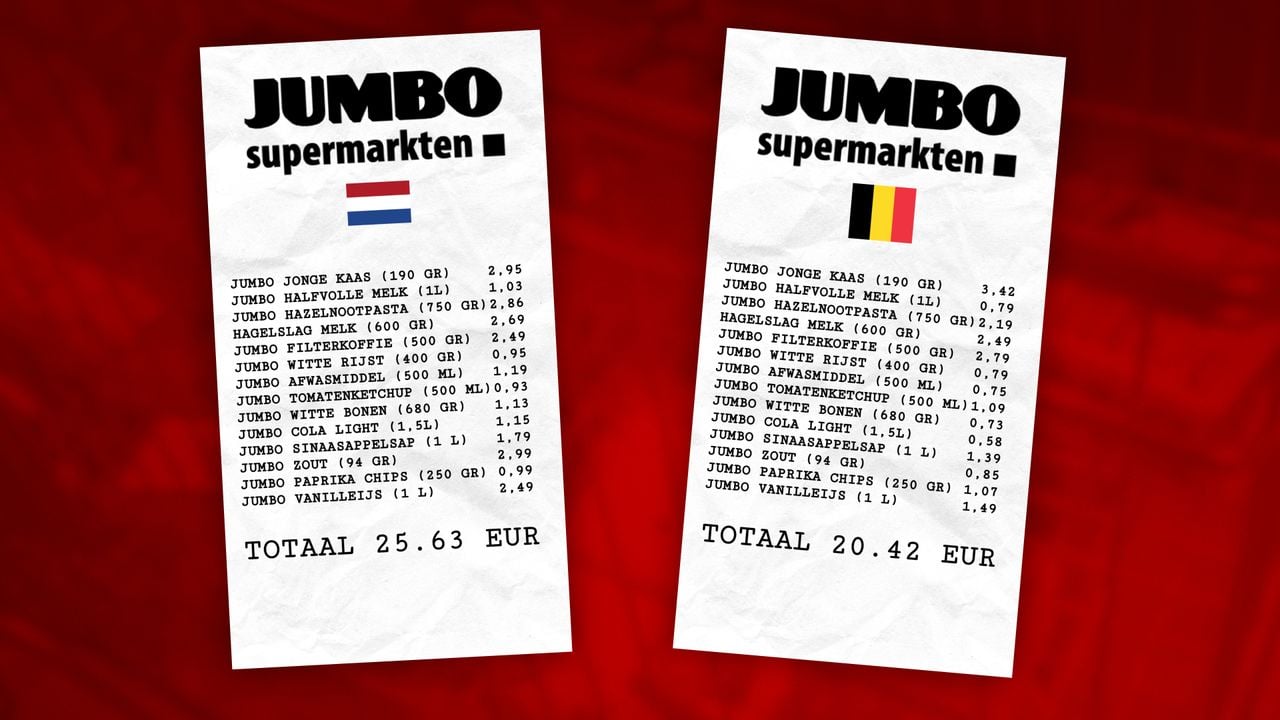 Volgens de Jumbo komen de prijsverschillen door andere wet- en regelgeving en door verschillen in accijns en verbruiksbelasting. “Daarnaast verschilt het Belgische supermarktlandschap van het Nederlandse en is de samenstelling van de markt van invloed op de prijzen”, zegt een woordvoerder van de supermarktketen uit Veghel. “Met de vergelijking laten jullie een selectie zien. Over het gehele assortiment genomen, verschillen de huismerkartikelen in Nederland en België niet.”