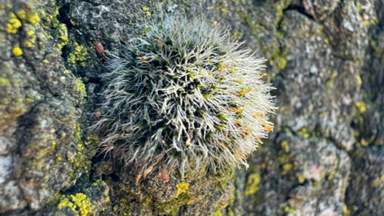 Marieke de Wit leest met plezier Stuifmail op de website en geniet van de oneindige hoeveelheid levensvormen die in deze rubriek passeren. Tijdens een wandeling zag ze een bolletje op de bast van een boom. Ze wilde natuurlijk graag weten wat dit is. Zelf denkt ze aan een soort mos. Marieke heeft helemaal gelijk, het is inderdaad een soort mos: gewoon muisjesmos. Je ziet dit gewoon muisjesmos als kleine compacte kussens op boomstammen, maar ook stenen van muren. De kleur kan erg variabel zijn: van zwart (bij nat weer) tot blauwgroen met een grijze glans (bij droog weer). Je komt gewoon muisjesmos vooral tegen in gematigde streken, zelfs tot een hoogte van drieduizend meter. De bolvorm is erg nuttig, want de oppervlakte is klein ten opzichte van de inhoud. Daardoor houdt deze mossensoort verdamping tegen en dus ook uitdroging.