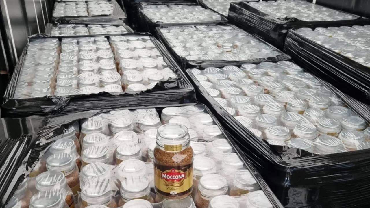 Het ging daarbij om dozen vol met namaakkleding, elektronica, paardensportkleding en drank. Maar het ‘hoogtepunt’ volgde in de laatste container. Daarin trof de politie maar liefst twintig pallets met gestolen koffie, goed voor ruim 2400 kilo