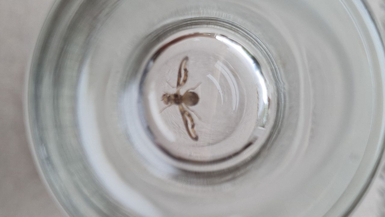 Nynke van der Heide en haar insectminnende moeder en oom kwamen er niet uit bij het zien van dit insect. Zelf zag ik wel dat het insect tot de vliegen en muggen (diptera) behoort, maar ik kon het ook niet plaatsen. Daarom wendde ik me tot deskundige Marcel Mutsaers en die kwam met de oplossing. Het is een trilvlieg. Toen wist ik het zelf ook weer, want trilvliegen maken zo’n mooie baltsbewegingen. Dit kun je bekijken via deze video van het EIS Kenniscentrum Insecten. Trilvliegen maken heel typische draaibewegingen, terwijl ze rondlopen. Daarbij vallen de fraai gekleurde vleugels erg op. Je herkent trilvliegen ook voornamelijk aan de bruine band op de vleugel, die helemaal rondom loopt. Groot zijn deze insecten niet: amper een halve centimeter. Toch kun je ze wel overal tegenkomen in ons land.