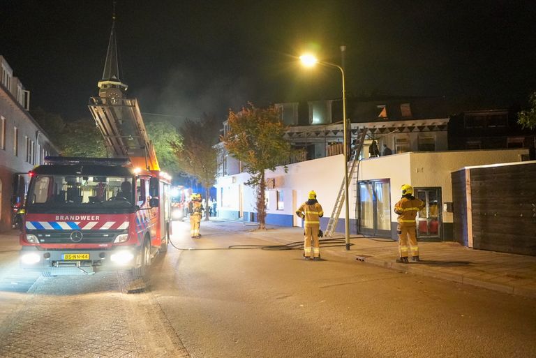 De brandweer kwam met twee blusvoertuigen, een watertank en een hoogwerker naar de brand. Er waren zo’n twintig brandweermensen opgetrommeld.
