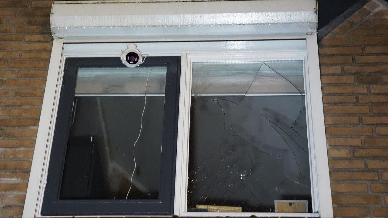 Ook de voorkant van het huis liep schade op. Zo was een ruit van de voordeur kapot en een ruit op de eerste verdieping. Deze zijn vermoedelijk ingegooid.