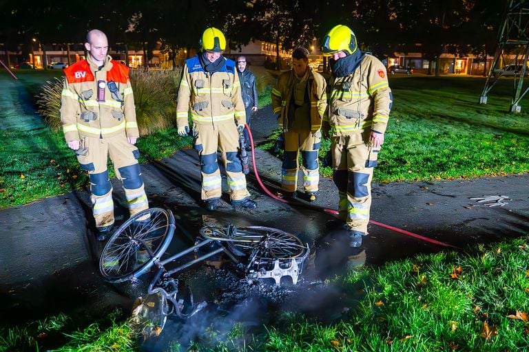 Een fiets is afgelopen nacht door brand verwoest in het park tussen de Neerveldstraat en de Kuipers Rietbergstraat in Oss. Buurtbewoners ontdekten de brand en zagen een aantal jongeren wegrennen. Zij belden daarop de brandweer. Die bluste de fiets.