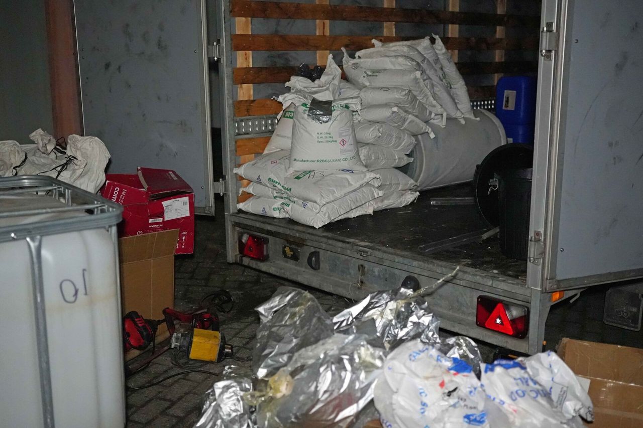 Technisch rechercheurs deden onderzoek in het pand. "Er stond veel apparatuur voor een forse productie", aldus een woordvoerder van de politie. Op het terrein stonden vriezers, grondstoffen om MDMA te maken, drugsafval, vaten en ketels. Er werd geen grote hoeveelheid drugs gevonden. Het terrein is afgesloten.