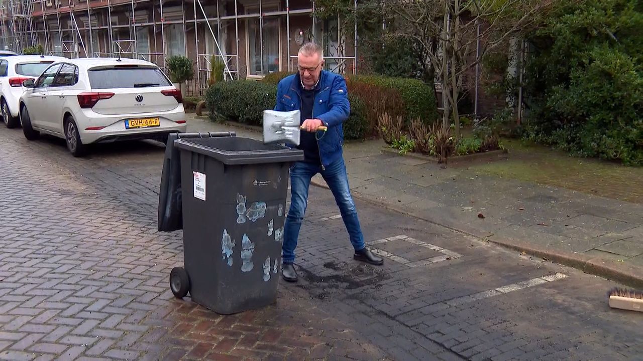 Bert van Gils heeft de straat alvast maar aangeveegd. “De gemeente werkt vandaag niet, dus doe ik dat maar met wat mensen uit de buurt”, vertelt hij.