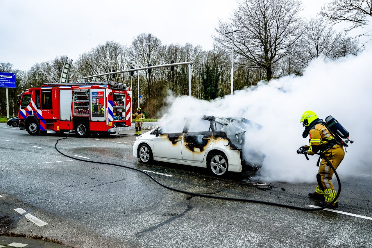 Het vuur is door de brandweer geblust. Ambulancepersoneel heeft de inzittenden gecontroleerd, maar ze hoefden niet mee naar het ziekenhuis.