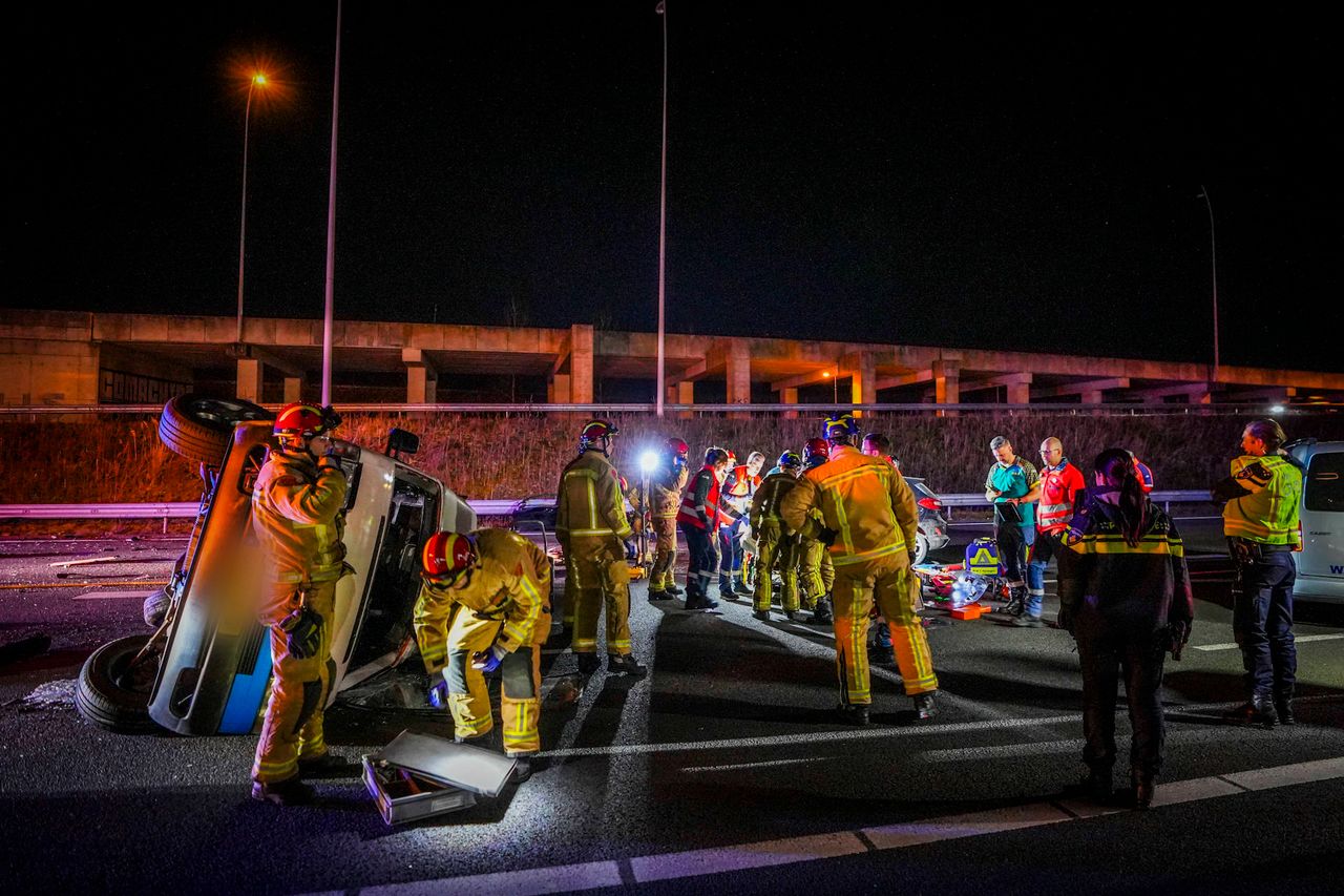 Brandweer bevrijdt 2 beknelde automobilisten na flinke botsing op snelweg