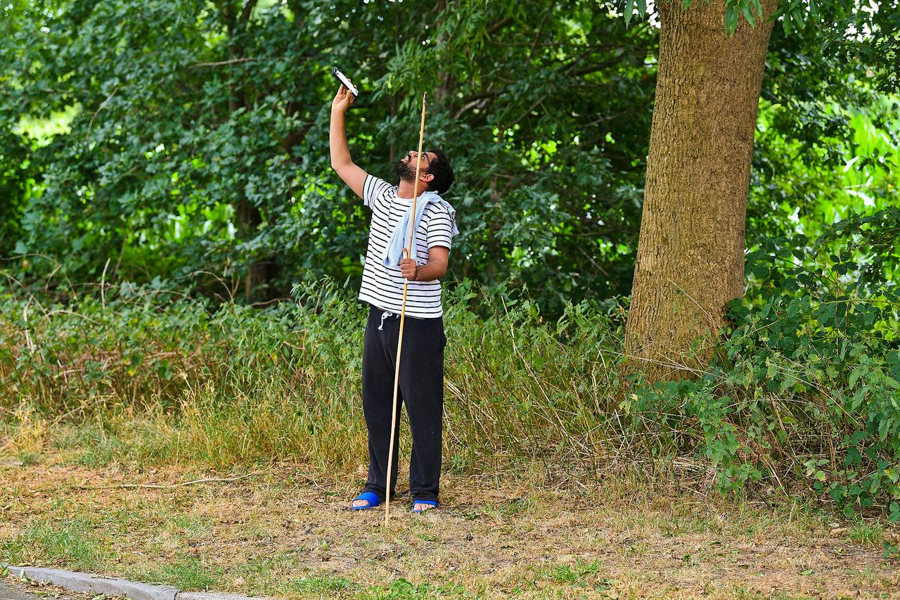 De brandweer probeerde het ook eerst vanaf de grond, met een nog langere stok waarmee aan de tak werd getrokken waar de papegaai op zat. Zonder succes, want de vogel vloog naar de naastgelegen boom. De brandweer probeerde dit vervolgens nog een keer, maar de papegaai zocht wederom een andere boom op in de Lijsterbeslaan.