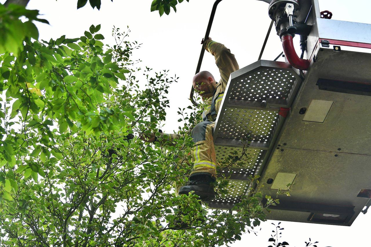 Hoewel de brandweer normaal pas na enkele dagen in actie komt bij katten op hoogte, werd dit keer vanwege de afkoelende avondtemperaturen en de natte vacht besloten eerder in te grijpen. De kat is uiteindelijk veilig uit de boom gehaald.