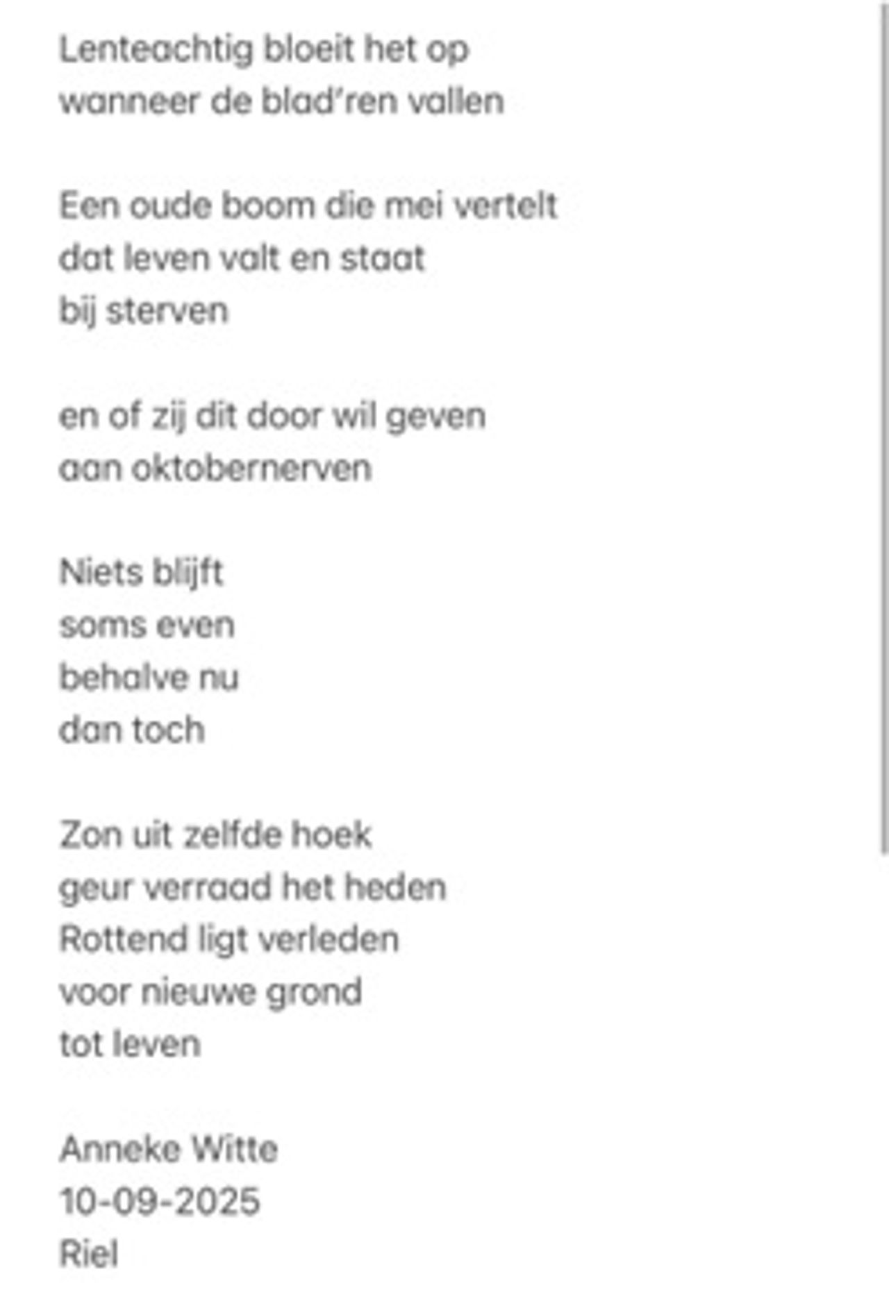 In de rubriek mooie foto's dit keer een foto die gemaakt is door Theo van de Rijk. Hij vraagt zich echter af wat hij gefotografeerd heeft. Op de foto staat het mycelium van een onbekende zwam. Een mycelium is in feite het begin van een zwam. Het is een netwerk van dunne, dradige schimmeldraden (hyfen) die het vegetatieve deel van een schimmel vormen. Later kunnen dan vruchtlichamen (paddenstoelen / hoeden) op dit netwerk uitgroeien. Het is dus spannend om af te wachten wat hieruit komt.
