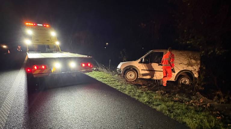 Een bestelbus is zaterdagnacht in de berm beland naast de A4 bij Hoogerheide. De bestuurder was in slaap gevallen.