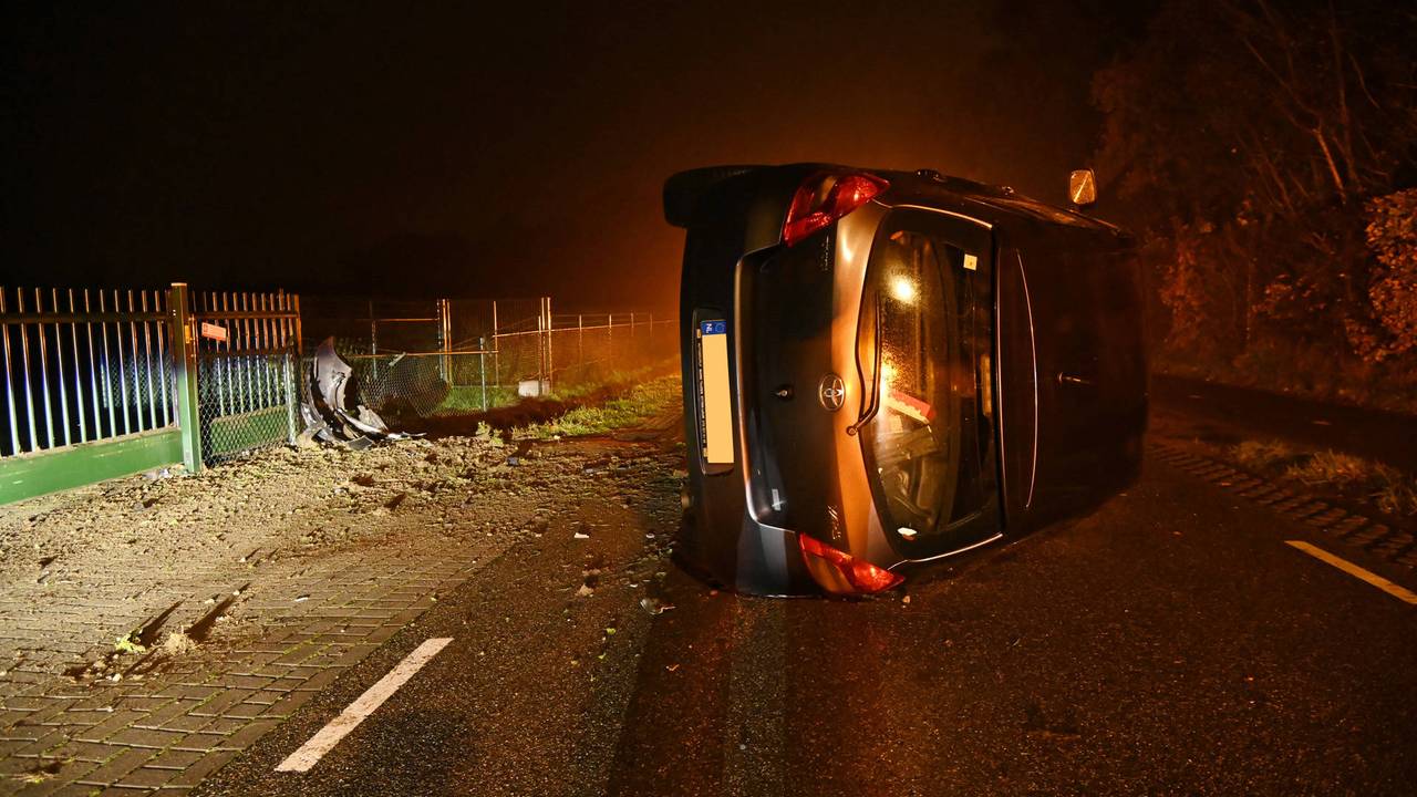Een auto is donderdagnacht omgeslagen op de Bovenstraat in Hoeven. Dit gebeurde rond halfdrie 's nachts.