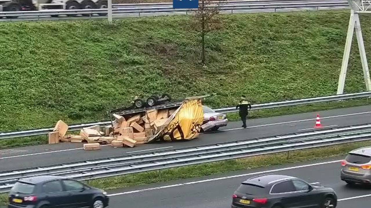 Pakketjes op snelweg door gekantelde aanhanger, A2 richting A58 dicht