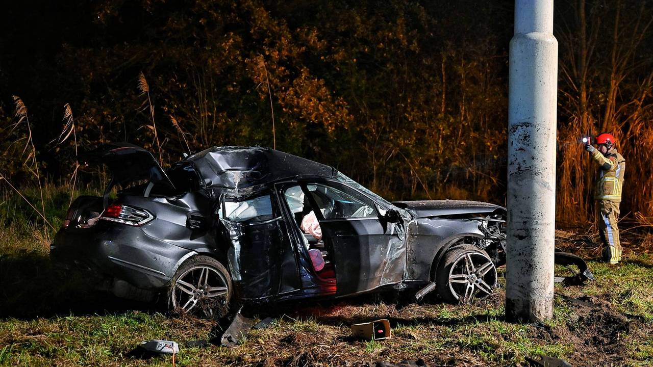 Auto schiet met hoge snelheid over rotonde, twee mensen (19) zwaargewond