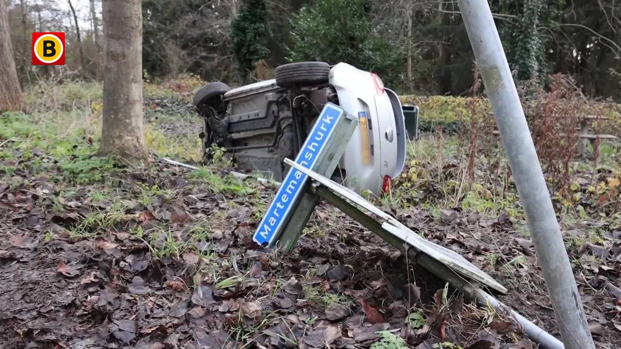 Een auto is zondagmiddag in Schijndel in de berm terechtgekomen en op zijn kant beland. Het ongeval gebeurde op de Martemanshurk, ter hoogte van de kruising met de Steeg.