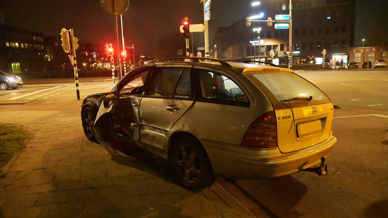 Drie auto's zijn vrijdagavond op elkaar gebotst op de Academiesingel, vlakbij de Koning Willem-Alexanderbrug, in Breda. Bij een auto brak een wiel af.
