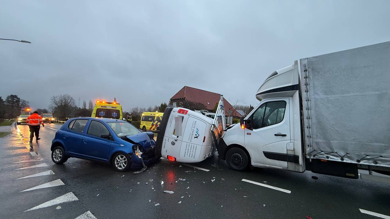 Op een kruising op de Boxtelseweg in Schijndel zijn vrijdagochtend een auto, bestelbus en bakwagen met elkaar in botsing gekomen.