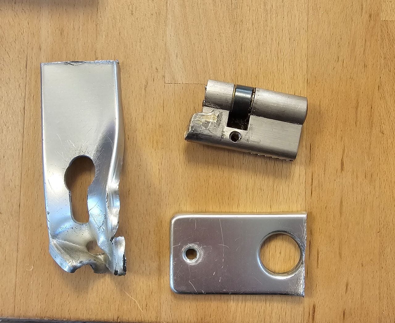 Bij de eerste inbraak van deze week werd de gereedschapskist geplunderd. "De cirkelzaag is meegenomen, de decoupeerzaag en schroef-boormachines", somt hij op. "Maar het ergst vinden we die sleutels. Er moesten vijf cilindersloten worden vervangen, dan praat je als snel over zo'n duizend euro."