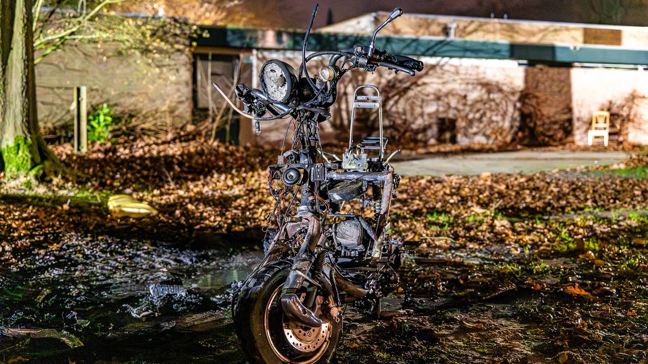 Een scooter is zondagnacht uitgebrand aan de Coornhertstraat in Oss. Het vuur werd rond vier uur 's nachts ontdekt.