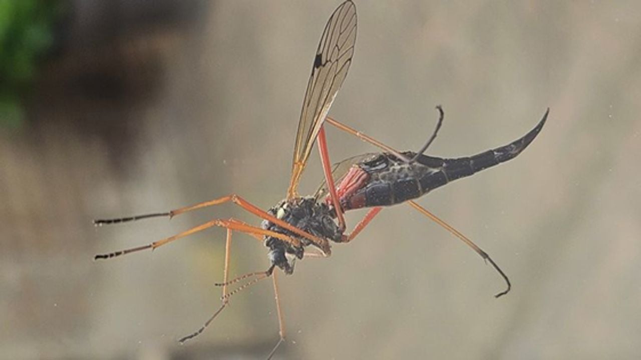 Gaby uit Tilburg vroeg zich afgelopen jaar af of er een zeldzaam dier tegen haar raam zat. Volgens Frans was dat niet het geval. Het ging om een langpootmug. Een zwarte vrouwelijke houtlangpoot.