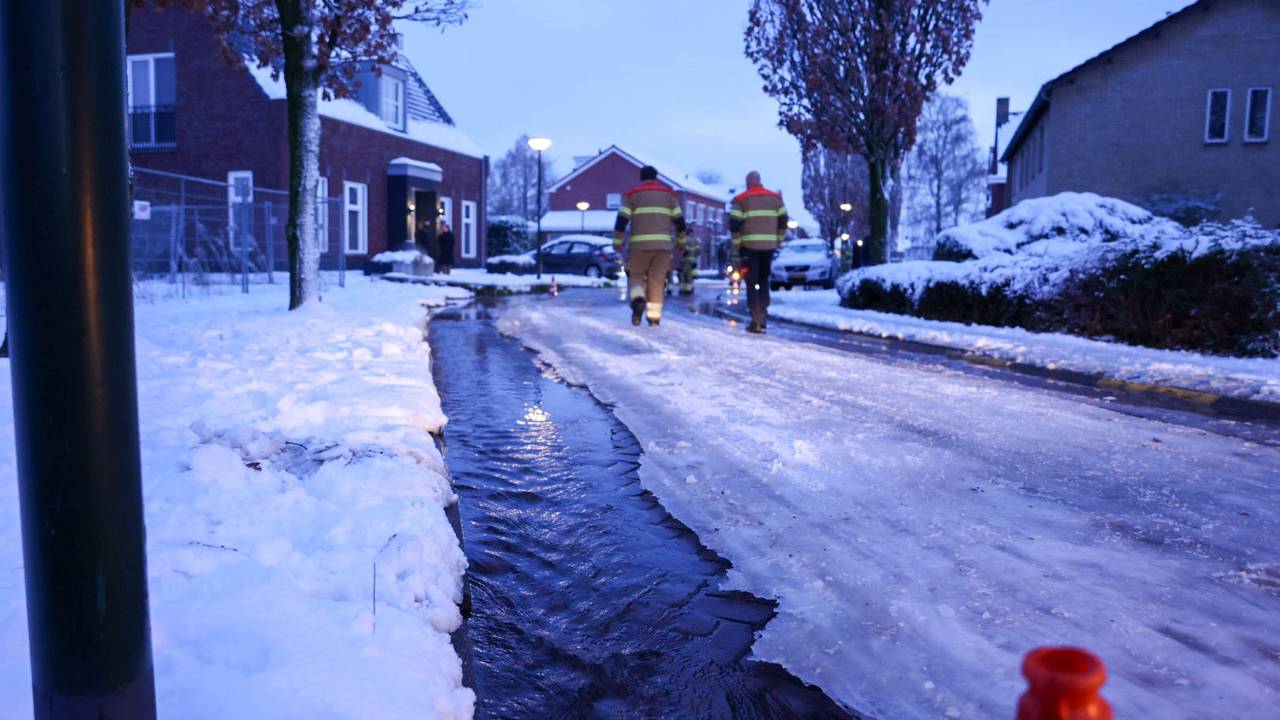 28 huizen nog uren zonder water door gesprongen leiding, straat staat blank