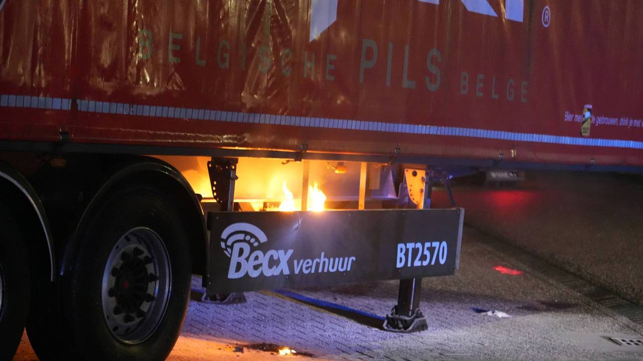 Accu vrachtwagentrailer vat vlam in Gilze