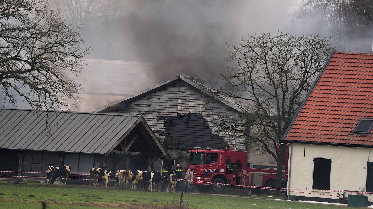 Brand uitgebroken in grote stal in Moergestel, koeien op tijd in veiligheid