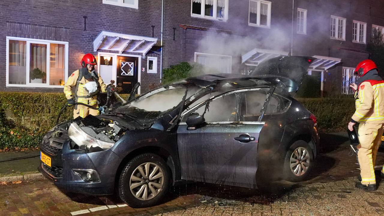 Een auto is in de nacht van zondag op maandag volledig uitgebrand op het Piramideplein in Breda. Bewoners hoorden voorafgaand aan de brand een harde knal.