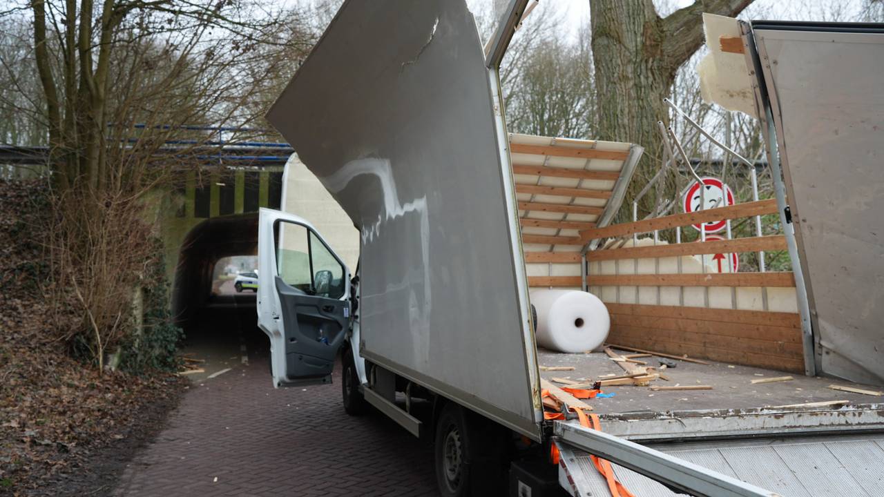 Bakwagen helemaal verwoest na botsing met tunneltje in Waspik