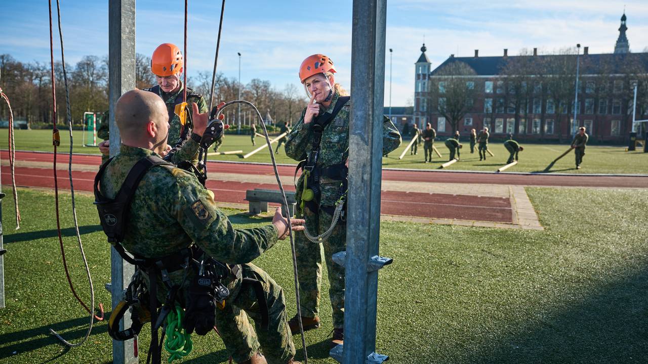 Koningin Máxima schiet, zwemt en abseilt tijdens opleiding in Breda
