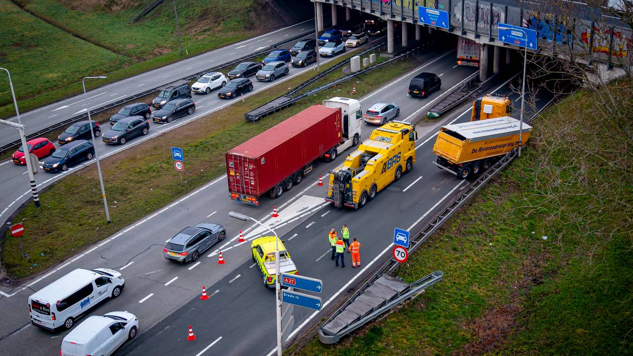 Vrachtwagen verliest laadbak met graniet op A59, weg nog urenlang dicht