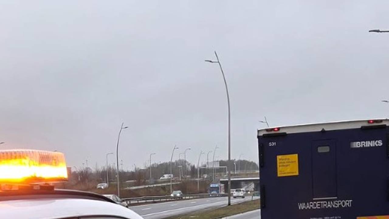 Een geldwagen is woensdag met pech op een busstrook gestrand van de N261 bij Waalwijk. De politie zorgde voor de beveiliging van de wagen.