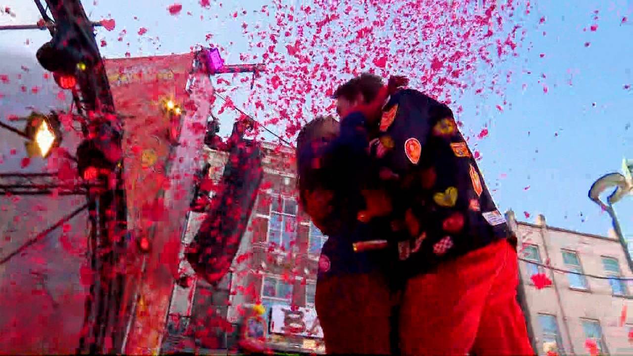 Als Valentijnsdag en carnaval samen vallen, dan móet dat wel een dag vol liefde en confetti worden. En zo geschiedde op de Grote Markt in Kielegat. Sander vroeg zijn Amy ten huwelijk.