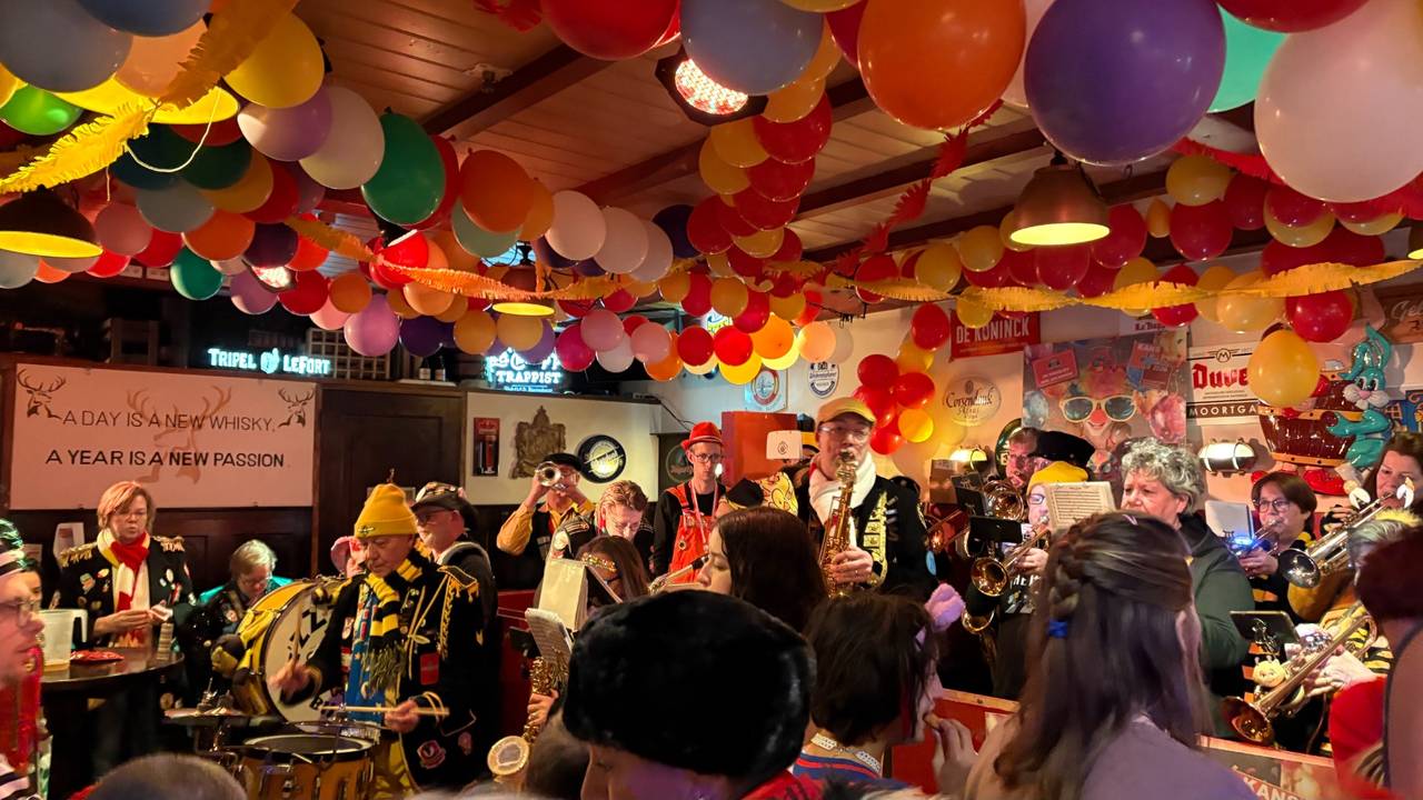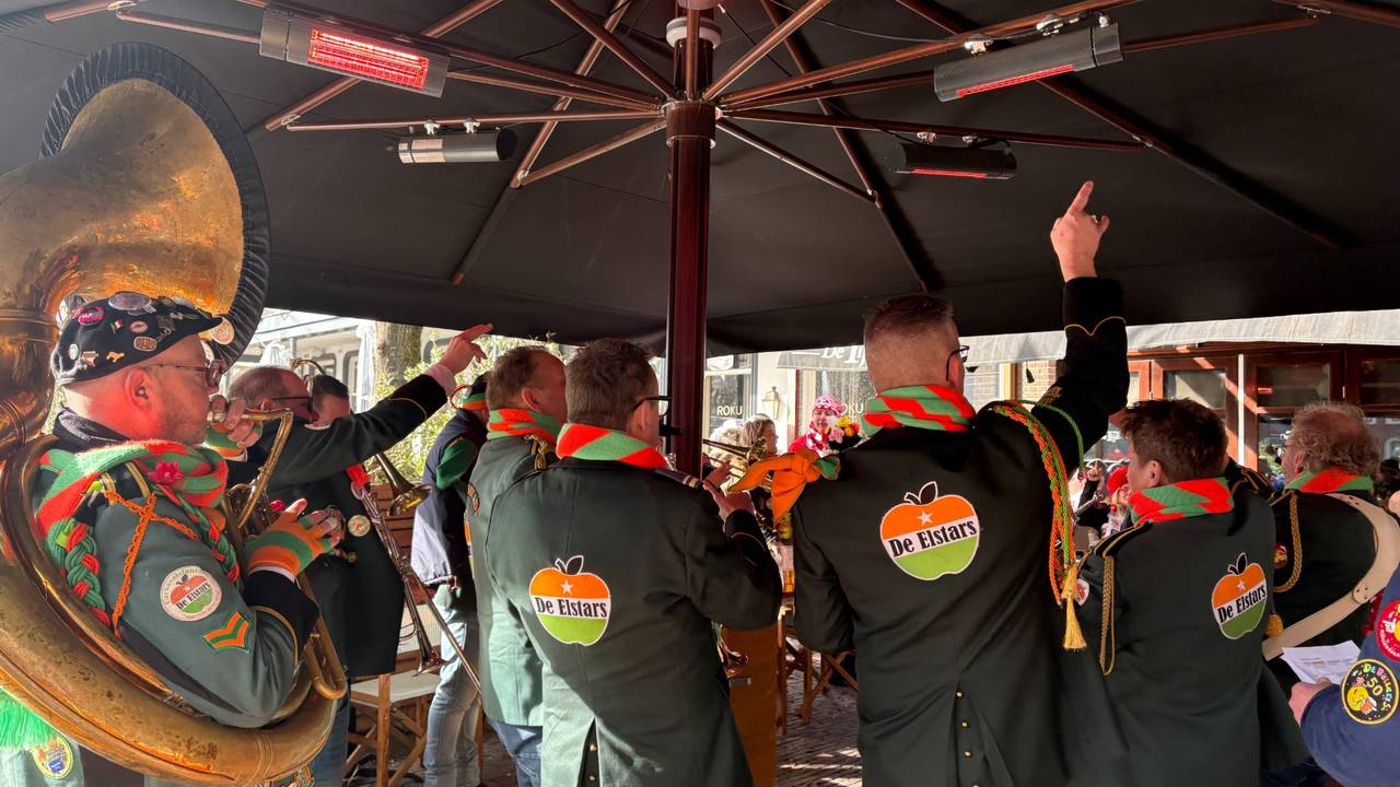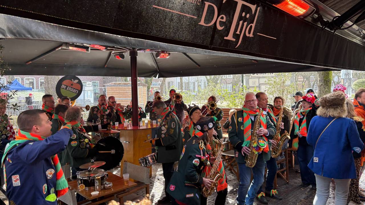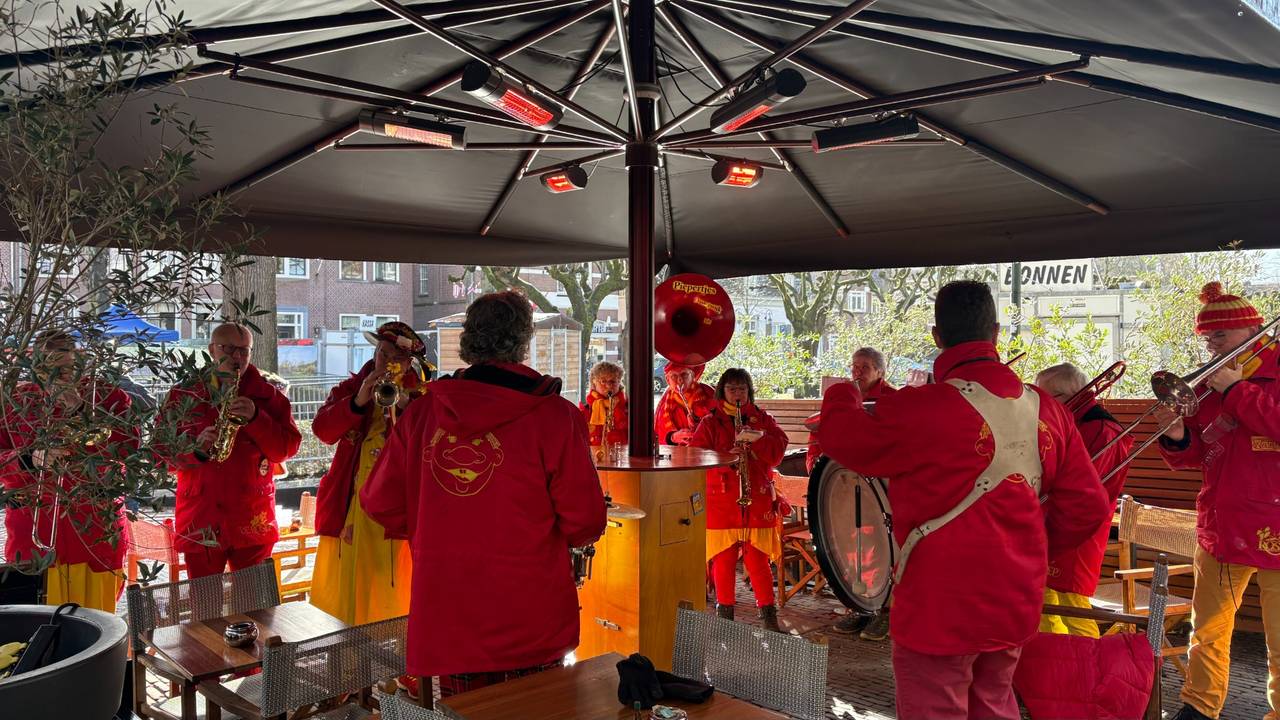In Oisterwijk is na enkele regenbuien het zonnetje gaan schijnen en trekken de dweilorkesten van café naar café voor het Open Brabants Kampioenschap Dweilorkesten.