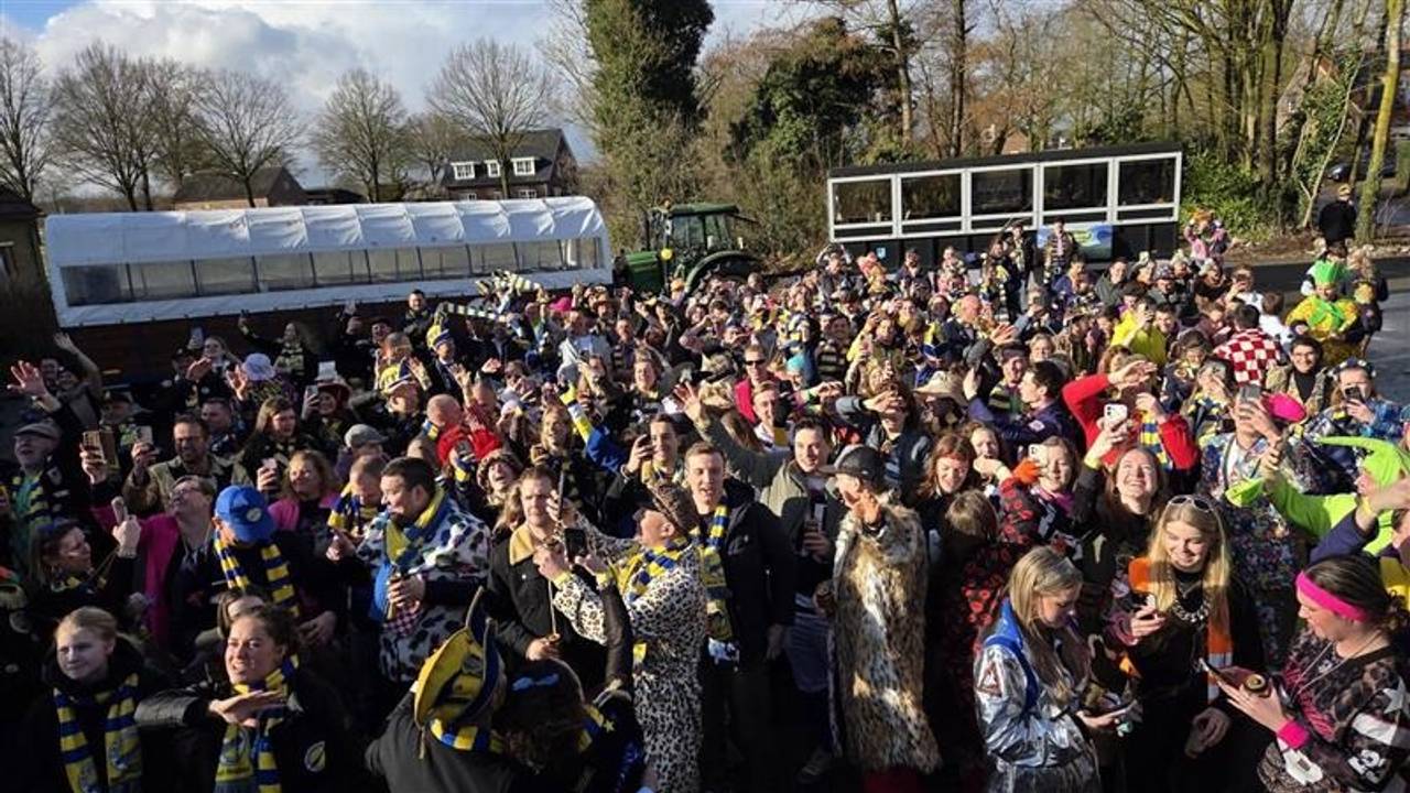 Op een pleintje bij de boerderijen stonden zo’n 210 mensen te swingen en te feesten toen de zanger ineens opdook. Niemand had het zien aankomen. “Ik weet het allemaal niet. Ik weet het allemaal niet. Staan we ineens hier bij Lamme Frans”, zegt een verbaasde carnavalsvierder.