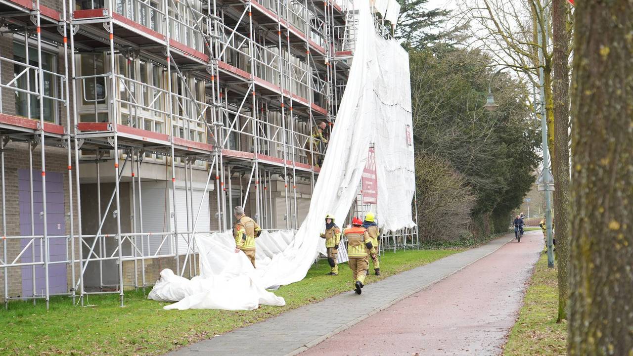 De brandweer werd zaterdagmorgen gewaarschuwd vanwege een doek dat was losgeraakt van een steiger tegen een appartementencomplex aan de Bredaseweg in Oosterhout. Dat zou een gevaarlijke situatie veroorzaken.