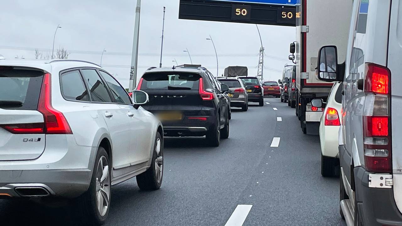 Op de A4 bij Bergen op Zoom-Zuid is dinsdagochtend een ongeluk gebeurd met vier auto's. De vertraging richting de Belgische grens liep op het hoogtepunt op tot driekwartier.
