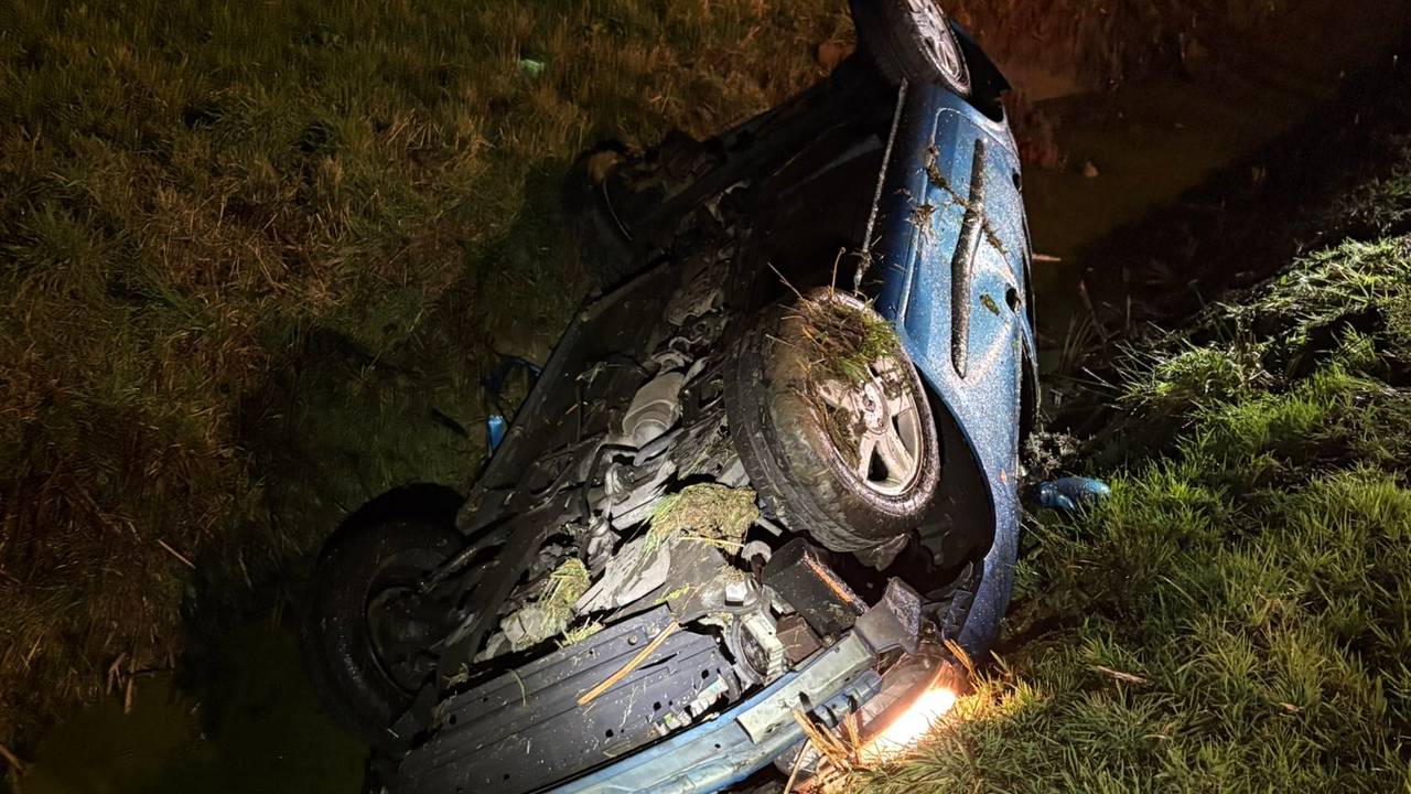 Een auto is vrijdagnacht gecrasht op de A50 bij Ravenstein. De auto raakte van de weg en belandde ondersteboven in een sloot.