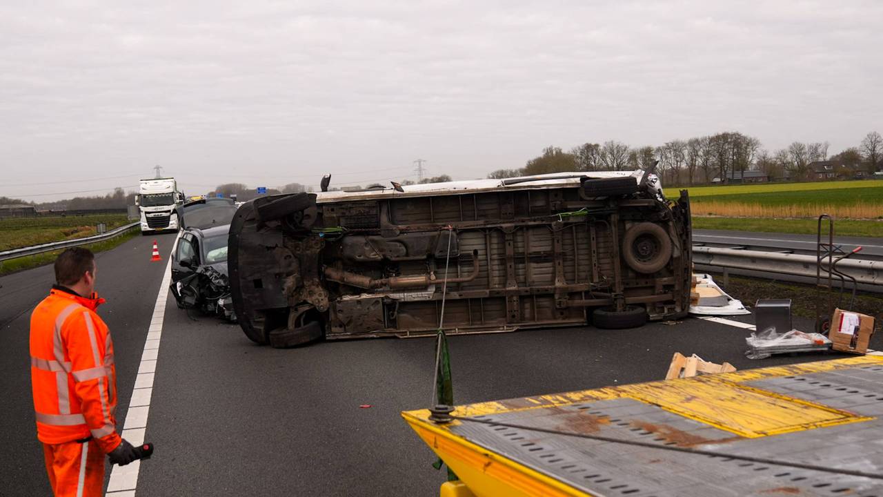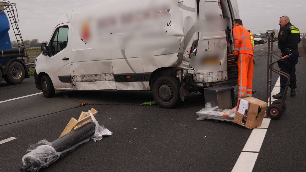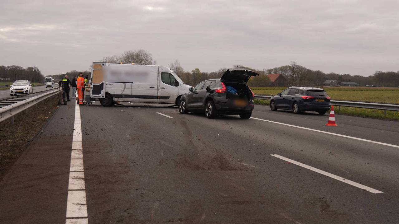 Ravage op de A67 na botsing busje en auto, snelweg even dicht