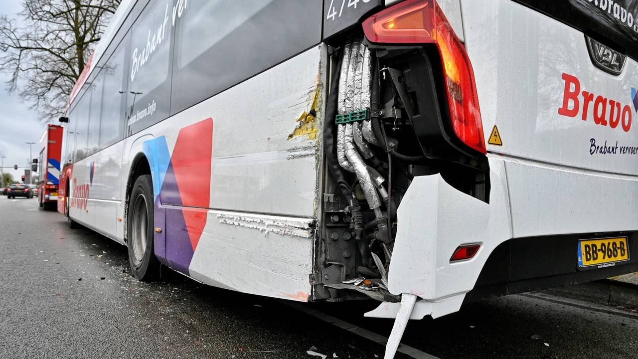 Stadsbus en brandweerauto botsen op elkaar bij bushalte in Tilburg