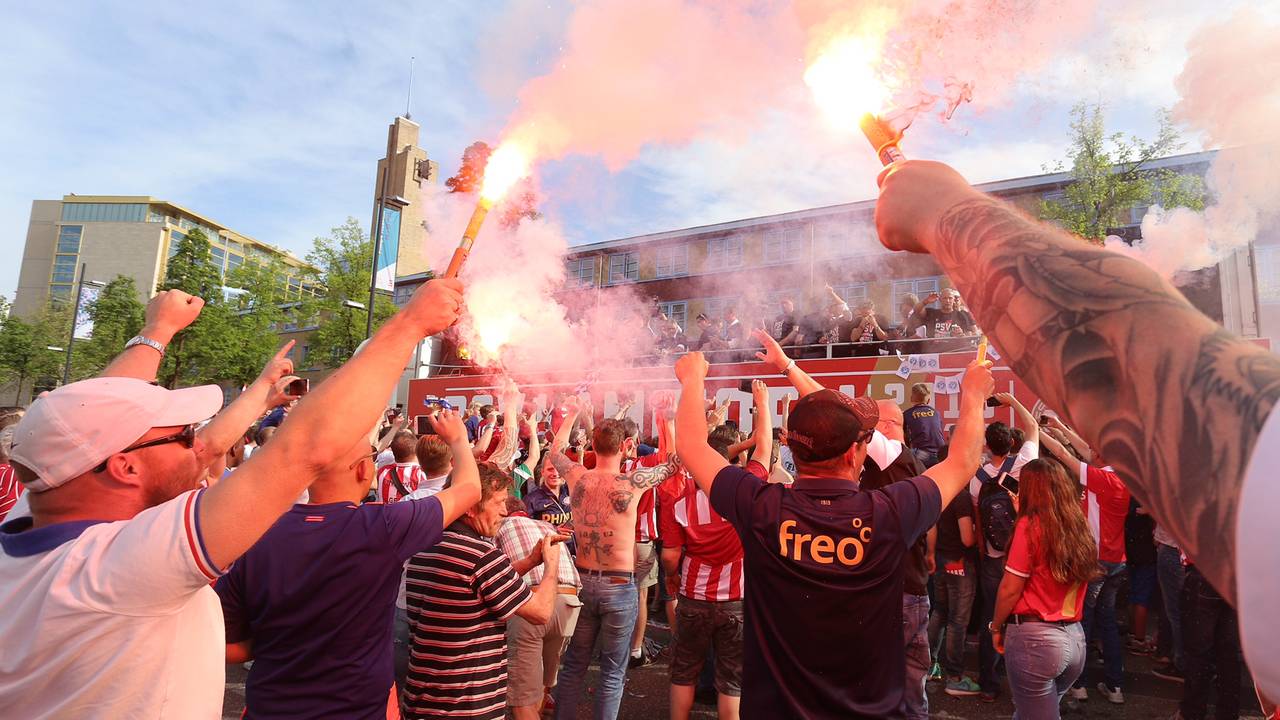 Daar wordt het feestje vervolgens verder gevierd met alle fans en wordt de ploeg officieel gehuldigd.