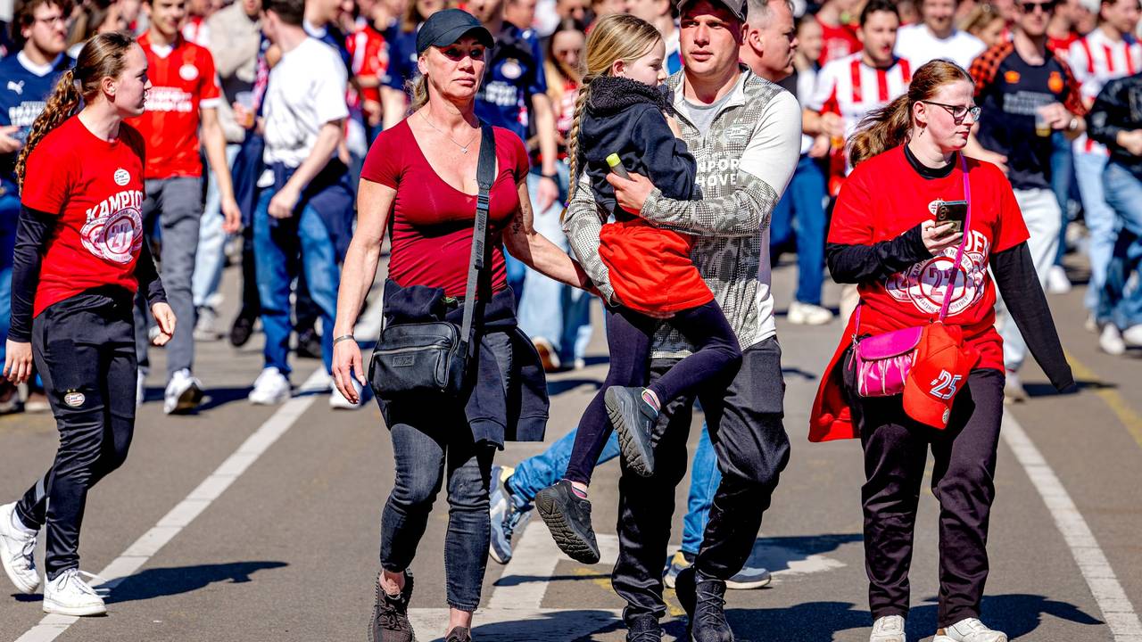 Het feest begint vandaag in het stadion van PSV waar de spelers straks de schaal uitgereikt krijgen. Het begint ook bij het stadion druk te worden.