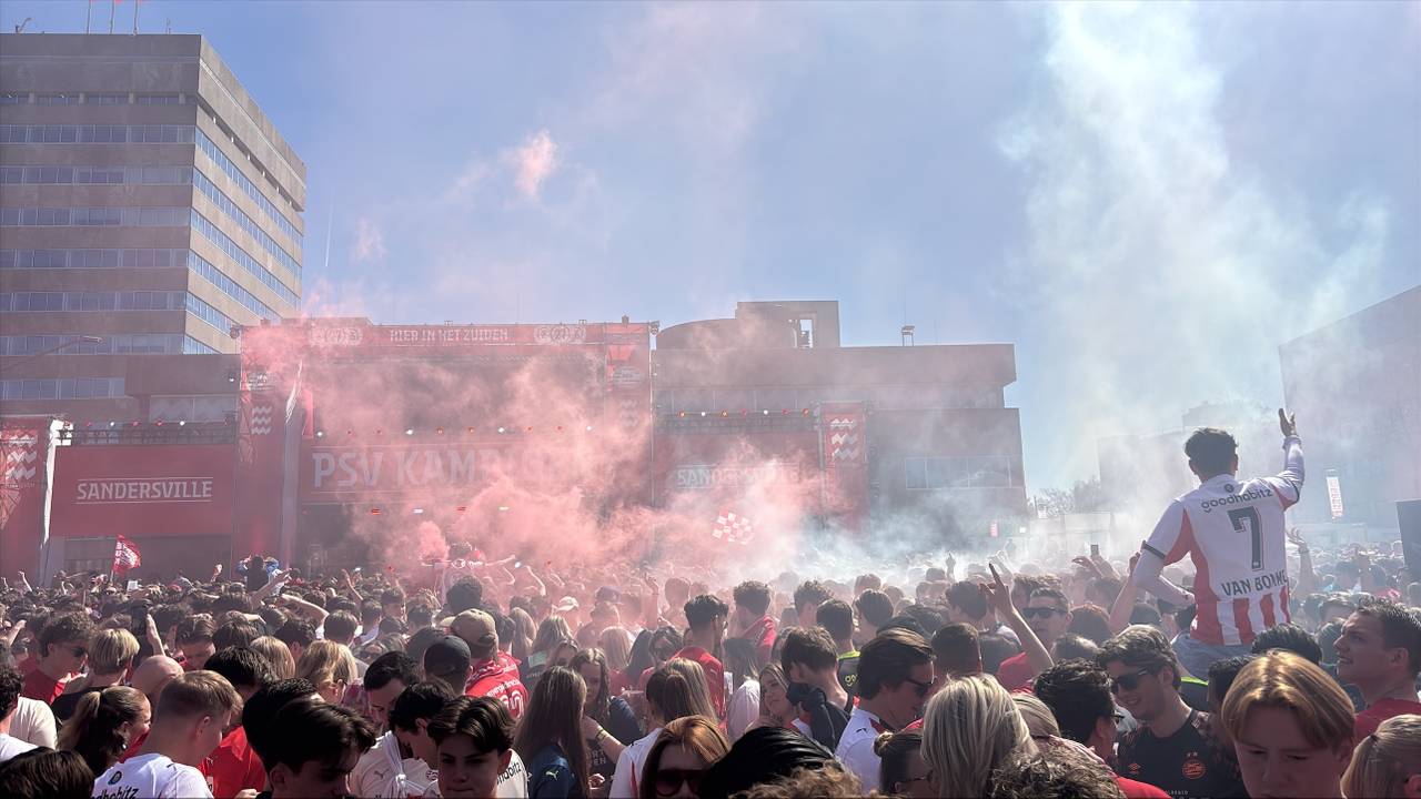 PSV haalde zondag officieel de landstitel binnen, nadat concurrent Feyenoord punten verspeelde bij laagvlieger FC Volendam. PSV had een dag eerder al gedaan wat het moest doen: FC Utrecht werd in Eindhoven met 4-3 opzij gezet. Hoewel de huldiging deze dinsdagmiddag plaatsvindt, vierden fans de titel zondagmiddag al even op een bomvol Stratumseind.