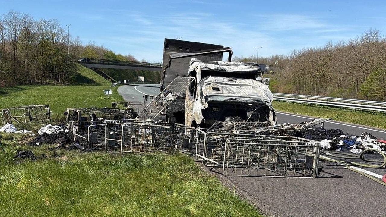 Bestelbus verwoest door brand op A2 richting Limburg