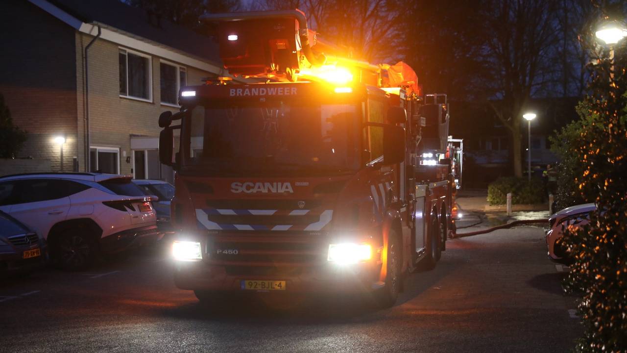 De brandweer kwam met een blusvoertuig en een hoogwerker naar de brand.