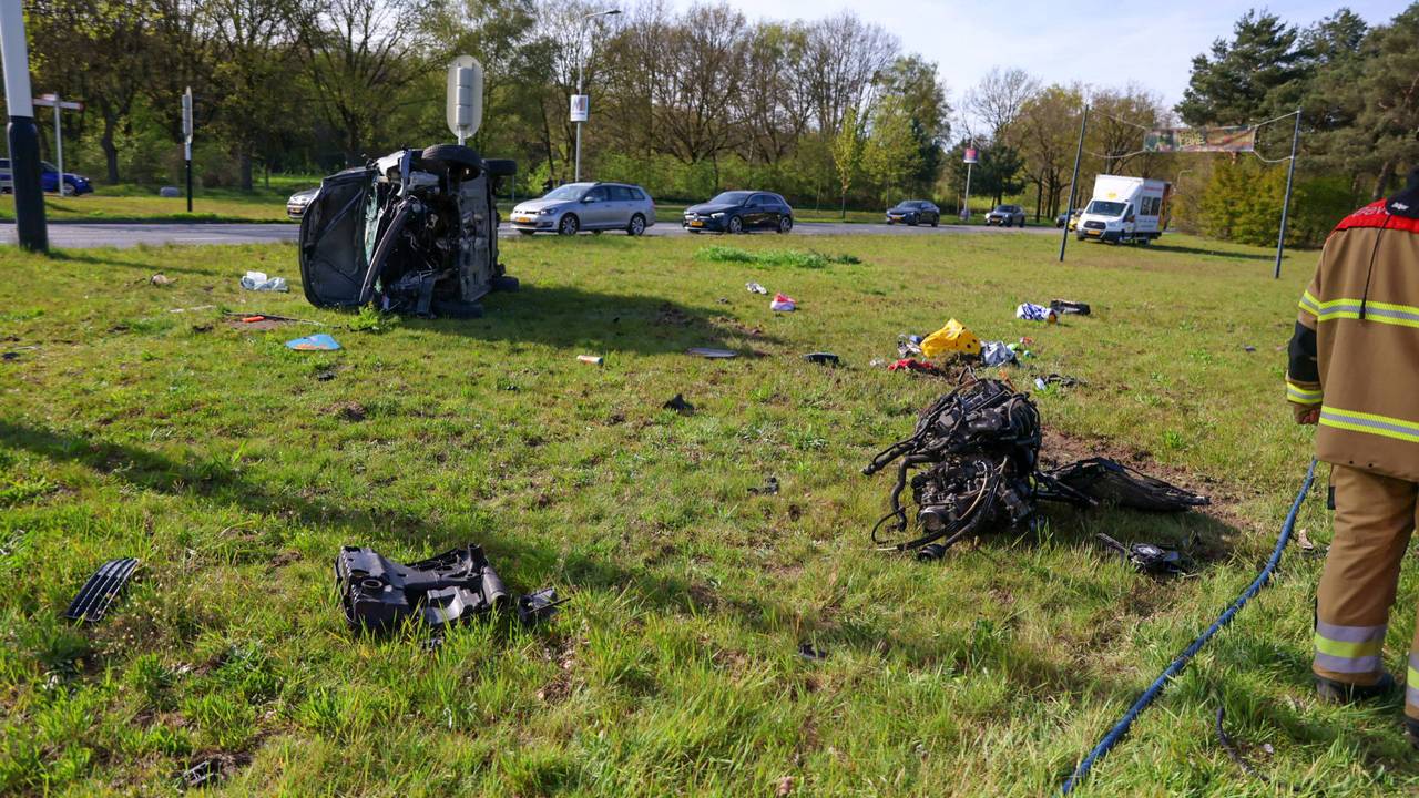 Motorblok vliegt uit auto bij botsing met busje in Oss, bestuurder gewond