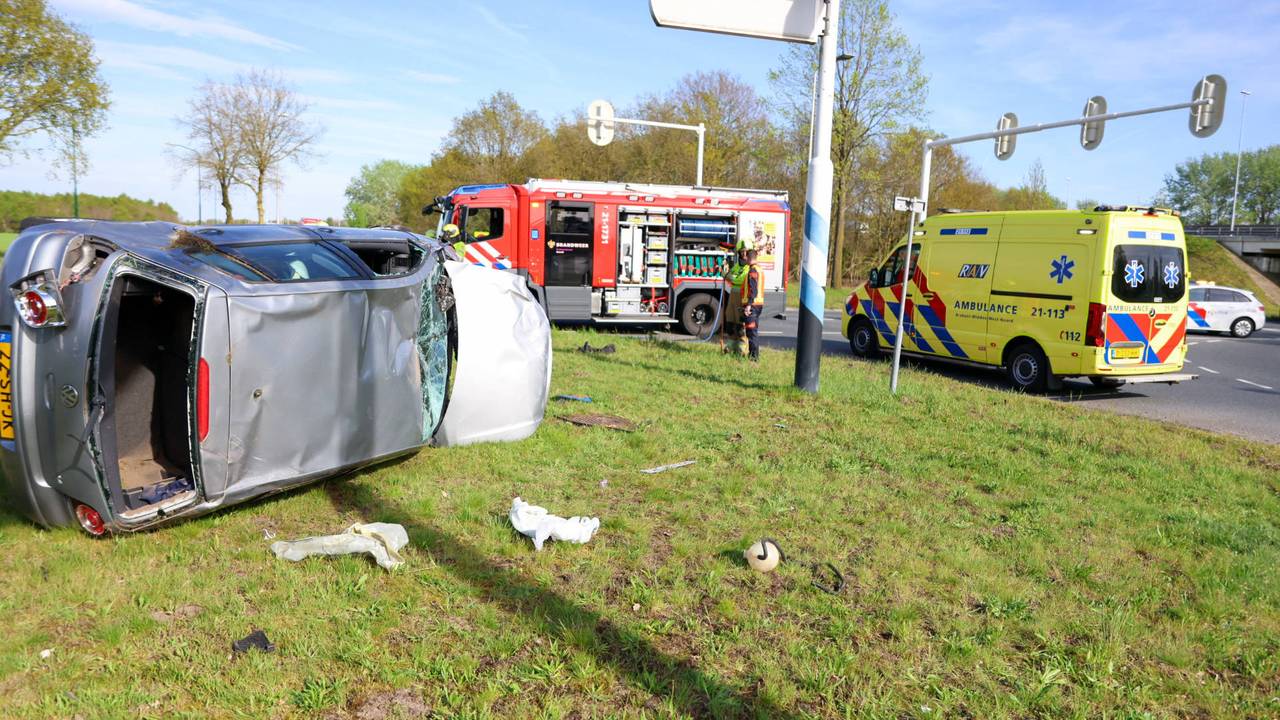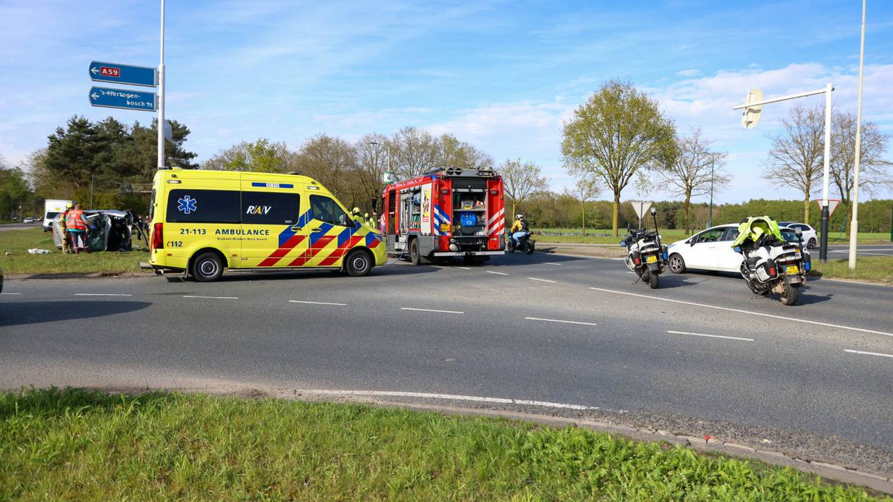 Een auto en een busje zijn woensdagmiddag op elkaar gebotst bij een afrit van de A59 in Oss. De bestuurder van de auto is met een ambulance naar het ziekenhuis gebracht.