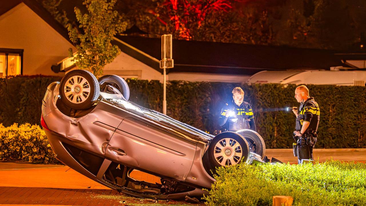 Een auto is donderdagnacht gecrasht in Heesch. De bestuurder raakte tijdens het afslaan naar de Grenadierstraat een houten paal naast de weg, waarna de auto kantelde en ondersteboven terechtkwam.