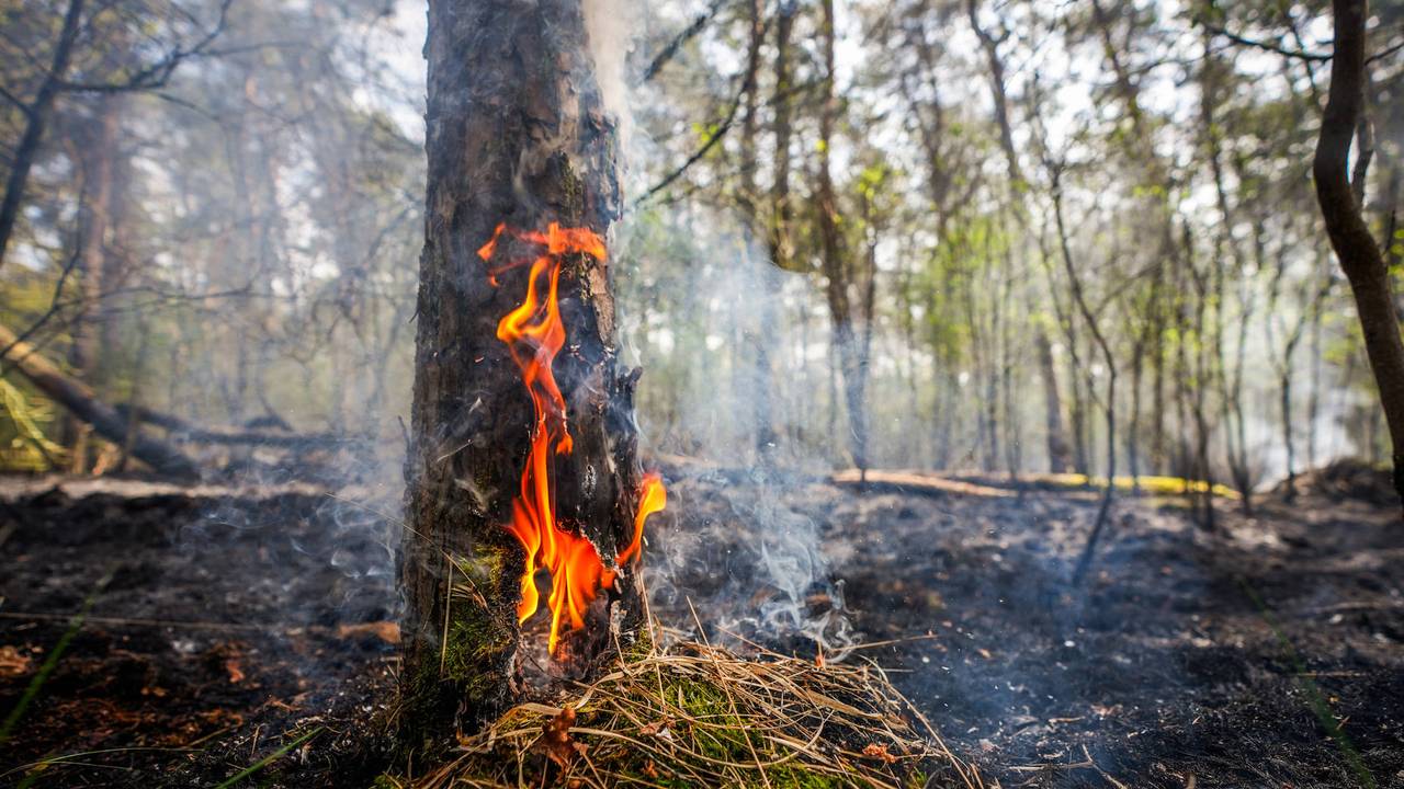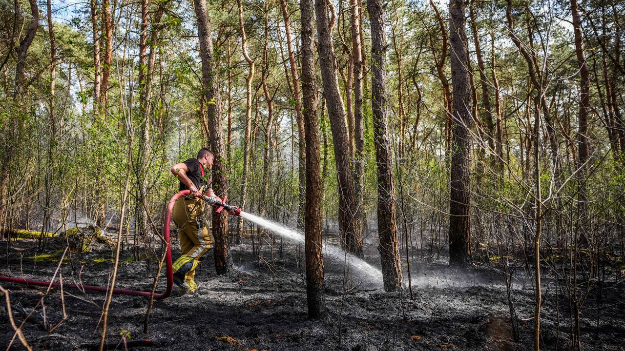 Voor de vijfde keer in vier dagen woedt maandag een natuurbrand in een bosgebied tussen Middelbeers en Wintelre. De brand is geblust, maar het nablussen gaat nog een tijd duren. Het vuur woedt diep in het bos.